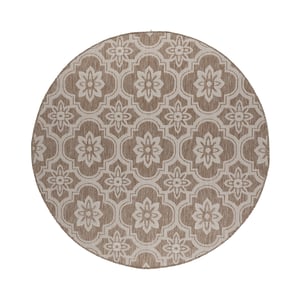 Okrągły dywan zewnętrzny – Rio Flower Beżowy jest dostępny w różnych rozmiarach, tj.: Ø 100cm, Ø 120 cm, Ø 140 cm, Ø 160 cm, Ø 200 cm en Ø 230 cm.
